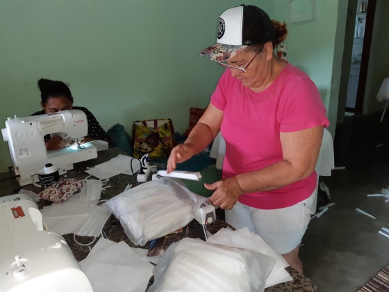 “Aceitamos doar o nosso tempo, a pedido da prefeitura, pois essas máscaras não são encontradas mais, em lugar nenhum. Até o dia primeiro de abril, por exemplo, concluímos a fabricação de 1.200 máscaras. Elas serão entregues à assistência social da prefeitura que faz a divisão para os setores de saúde”, confirma a presidente da Associação Comunitária de Moradores da Comunidade de Sapucaia, Joana d’arc de Almeida Silva, que integra um coletivo de sete voluntárias e cede a própria casa para os trabalhos.