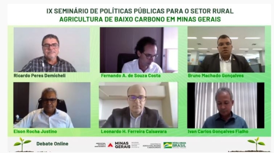 O balanço das ações, impactos e resultados do Plano ABC em Minas, as linhas de financiamento e recursos disponíveis aos produtores interessados foram abordados no IX Seminário de Políticas Públicas para o Setor Rural, realizado pela Secretaria de Agricultura, Pecuária e Abastecimento (Seapa), em parceria com o Ministério da Agricultura. O evento virtual foi realizado na quinta-feira (23/9) com transmissão pelo canal da Seapa no Youtube.