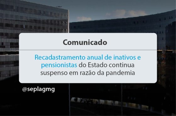 O prazo para recadastramento anual de inativos e pensionistas do Poder Executivo Estadual que fizeram aniversário a partir de março de 2020 permanece suspenso em razão da pandemia de Covid-19. Os pagamentos estão sendo realizados normalmente, uma vez que a medida não implica a suspensão do benefício durante o período.