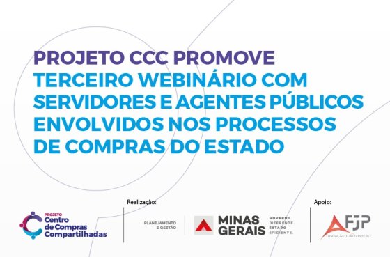 A equipe do Projeto Centro de Compras Compartilhadas (CCC), da Secretaria de Estado de Planejamento e Gestão (Seplag), realizou, nesta quinta-feira (25/2), o terceiro webinário com servidores e agentes públicos envolvidos nos processos de compras do Estado. O evento on-line, realizado em parceria com a Fundação João Pinheiro (FJP), buscou promover um diálogo com os órgãos e entidades estaduais sobre os processos de trabalho da futura unidade central de compras públicas.