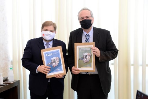 O Governo de Minas entregou, nesta quarta-feira (30/9), à Assembleia Legislativa de Minas Gerais (ALMG), o projeto de Lei Orçamentária Anual (PLOA) para o exercício de 2021. O documento foi repassado pelos secretários de Estado de Governo, Igor Eto, de Planejamento e Gestão, Otto Levy, e de Fazenda, Gustavo Barbosa, ao presidente da Assembleia Legislativa, Agostinho Patrus.