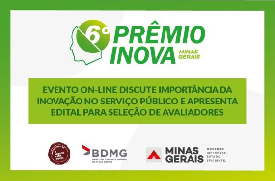 As abordagens apresentadas no webinário poderão contribuir para o desenvolvimento de projetos a serem inscritos na 6ª edição do Prêmio Inova Minas Gerais, coordenado pela Secretaria de Estado de Planejamento e Gestão (Seplag). São duas categorias: Iniciativas Implementadas de Sucesso – iniciativas já implementadas que tenham resultados mensurados – ou Ideias Inovadoras Implementáveis – ideias ainda não implementadas ou em fase inicial de desenvolvimento). As inscrições acontecem do dia 26 de julho a 24 de agosto.