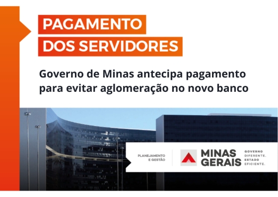 Governo de Minas antecipa pagamento dos servidores este mês para quinta-feira, dia 06/01, em razão da mudança para o novo banco